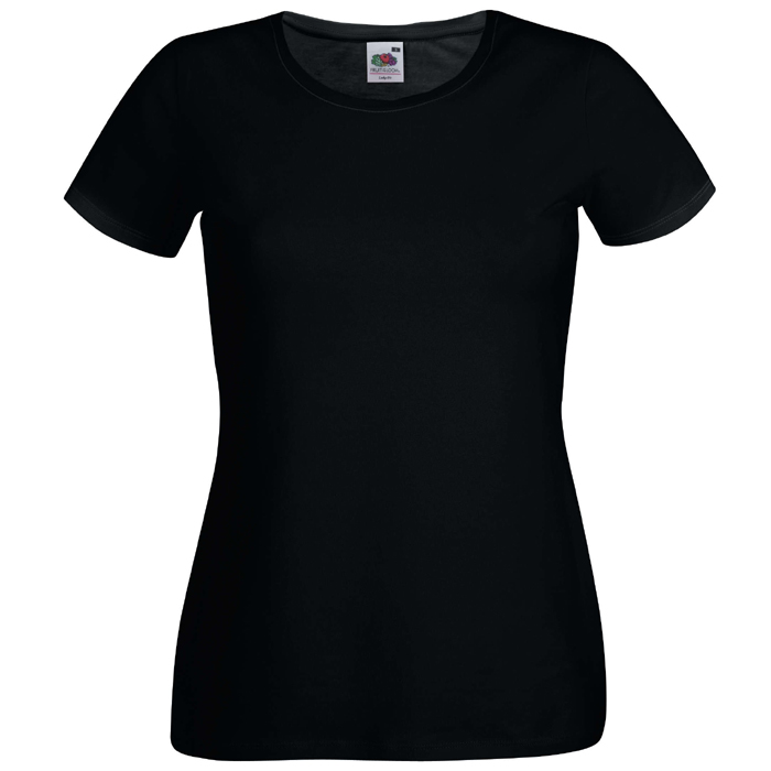 100% cotton jersey Women's fitted T-shirt (150 g/m²). Colour 83: 90% cotton / 10% viscose. Slim jersey collar with satin ribbing. Double stitching on sleeves and bottom. Cut and sewn.