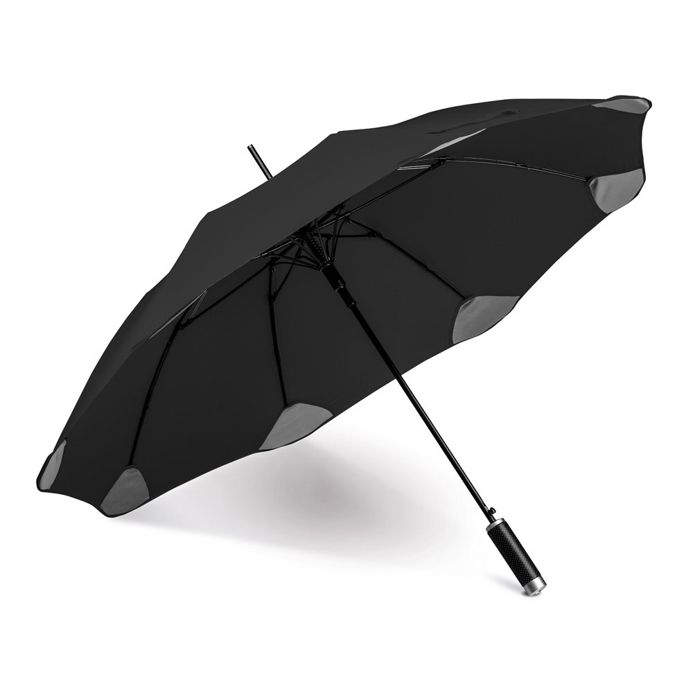 190T polyester umbrella with aluminum shaft and handle. This umbrella has automatic opening.
